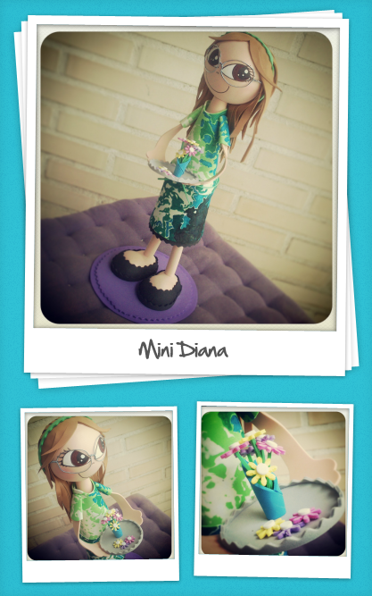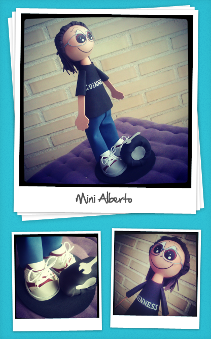 Mini Diana con su vestido "desigual" y su bandeja con flores ya que es florista y camarera y Alberto, mecánico listo para reparar su rueda con su camiseta guinness ayer fueron los testigos de la boda de Patricia y David y los recien casados quisieron obsequiarles con este regalo tan especial y personal :-)